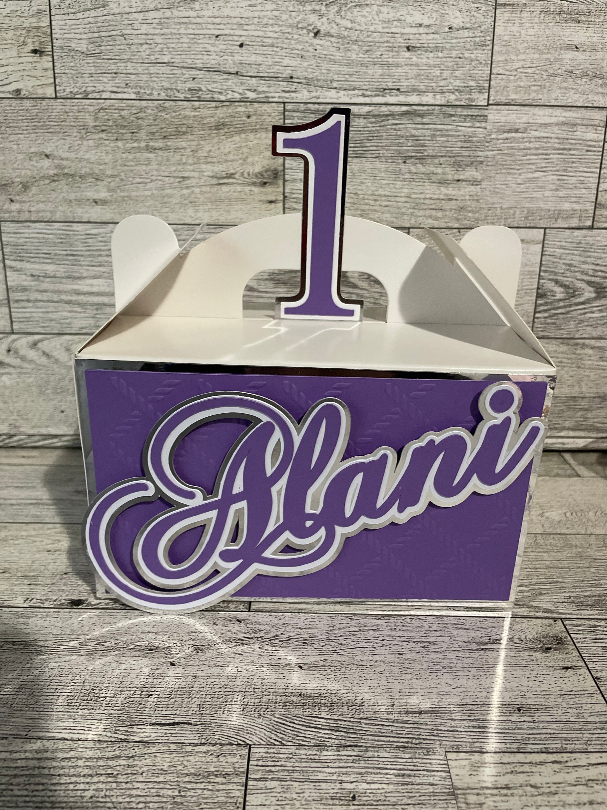 A personalized favor box for any event! Let your guests know you appreciate them more than a generic goody bag! This box will be customized with the honorees name and age making it extra special.